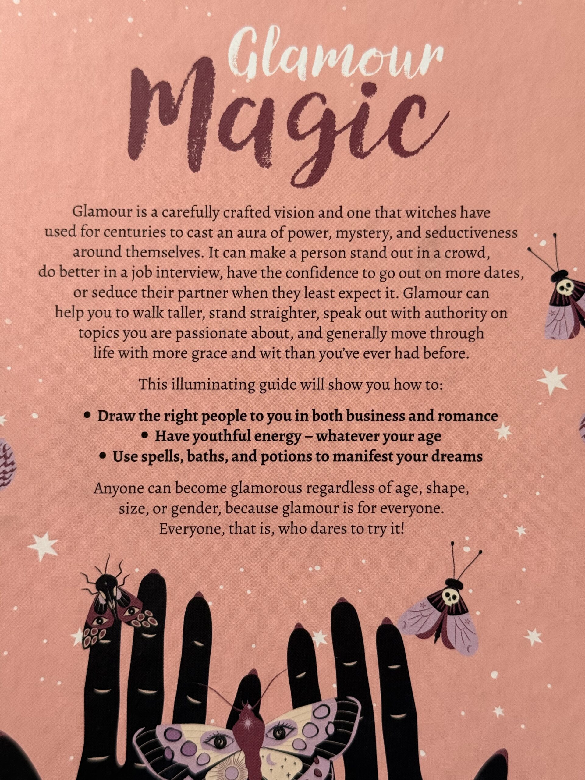 Glamour is a carefully crafted illusion that witches have used for centuries to cast an aura of power, mystery and seductiveness around themselves. It can make a person stand out in a crowd, do better in a job interview, have the confidence to go out on more dates, or seduce their partner when they least expect it.